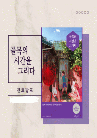 해당 자료는 1학년 진로시간에 발표한 자료입니다. 관광에서 벽화마을 같은 골목 관광지에 대한 관심이 생겼고, 이러한 관심에서부터 이어져 책을 읽고, 발표했습니다. 1학년 활동이라 피피티 제작이나 내용이 다소 서툴 수 있는 점 양해부탁드립니다