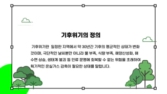 기후위기의 뜻과 원인을 설명하고 기후위기로 인한 영향과 구체적인 사례를 적었습니다. 또한 기후위기를 막아야 하는 합당한 이유와 세계적인 노력, 개인적으로 실천 할 수 있는 노력들을 담았습니다. 특히 기후위기 취약계층인 사회적 약자(노인, 장애인, 저소득 가구)에게 더 취약한 이유, 재난 유형별 영향과 사회복지적 관점에서의 대응 방안을 작성했습니다.