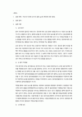 화학 실험 보고서 zip.2 – 산염기 평형, 반응 엔탈피
