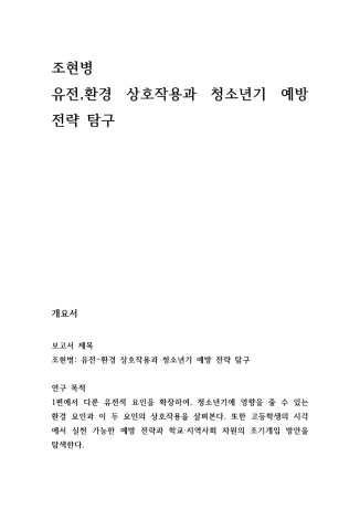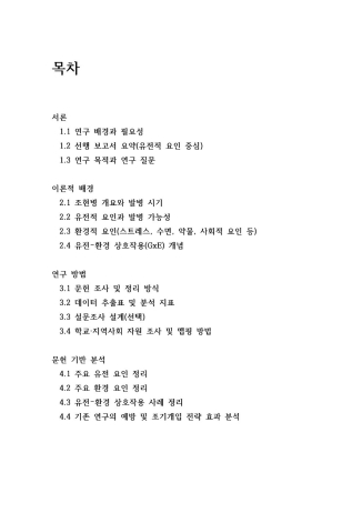 이 포트폴리오는 제가 직접 연구하고 정리한 조현병의 유전적 요인과 환경적 요인, 그리고 청소년기에 실천 가능한 예방 전략에 관한 탐구 보고서를 담고 있습니다.