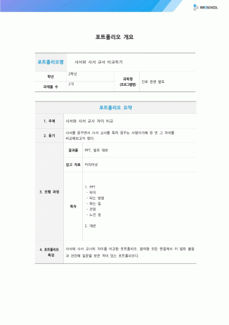 제목부터 알 수 있듯이, 사서와 사서 교사를 비교한 내용을 담고 있는 포트폴리오입니다. 참여한 모든 면접에서 이 발표와 관련해서 질문을 던져서 답변을 했던 기억이 있는 활동이기도 합니다. 문헌정보학과를 희망한다면, 사서를 꿈꾼다면 한 번쯤 생각해도 좋을 거 같다고 생각합니다. 면접에서 질문이 나온 건... 아무래도 호기심을 유발하는 활도이어서이지 않을까 싶습니다.