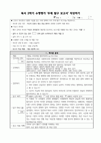 과목 간 연계를 통하여 수업시간에 배운 내용을 바탕으로 심화활동을 진행하고 자신만의 정의를 내리는 등 창의성을 포함하고 있음
