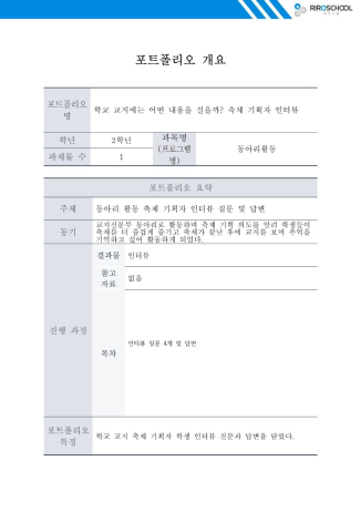 포트폴리오는 학교 교지 축제 기획자 학생 인터뷰 질문 4개과 답변으로 구성되어 있다.