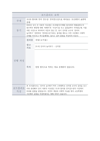 시사이슈와 강연 엮기: 언어 감수성 시선에서 본 10.29참사