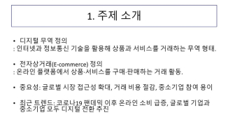 디지털 기술의 발전으로 무역과 전자상거래가 급성장하며 글로벌 경제 구조를 변화시키고 있습니다. 이러한 흐름을 이해하고, 특히 중소기업과 소비자에게 미치는 영향을 분석하고자 이 주제를 선택했습니다.