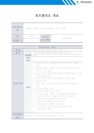 저는 고등학교 3년 동안 경제에 대한 관심을 바탕으로 생기부를 꾸준히 채워왔습니다. 매번 남들과 차별화된, 눈에 띄는 탐구 주제를 선정하기 위해 많은 고민을 했고, 그 결과로 생기부에 대해 여러 선생님들께 긍정적인 평가를 받을 수 있었습니다. 비록 관련 학과로 진학하지는 않았지만, 그동안 쌓아온 탐구 경험이 제게 큰 자산이 되었고, 같은 고민을 하는 여러분께도 작은 도움이 되고자 합니다. 지금부터 제가 실제로 고민하고 탐구했던 주제들을 바탕으로, 주제 선정에 도움이 될 만한 아이디어들을 공유하고자 합니다.
