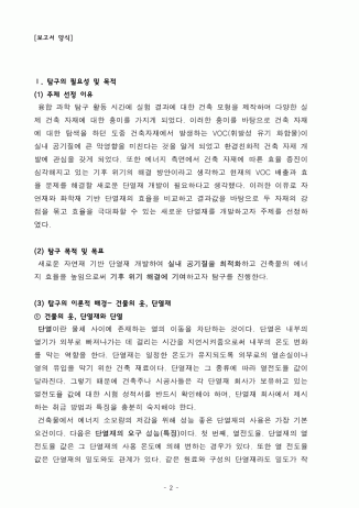 1. VOC 배출 문제 해결을 위한 자연재 기반 단열재 제작 - 탐구 보고서