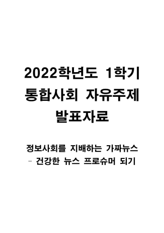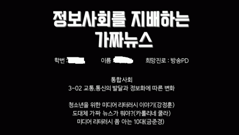주제 : 정보사회를 지배하는 가짜뉴스 – 건강한 뉴스 프로슈머 되기