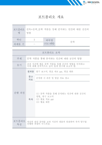 위 포트폴리오는 고등학교 2학년 문학 시간에 접한 작품을 통해 알게된 공간의 영향을 문학적으로 심도있게 분석한 내용을 담고 있습니다.