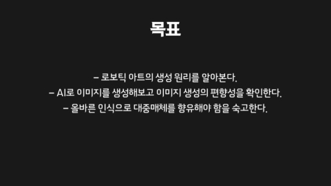 AI 또한 인간의 개발로 생성된 만큼 AI는 수많은 편견과 불평등에 잠식되어 있습니다. 이 포트폴리오에서는 그중 로보틱 아트에 초점을 맞추어, AI의 이미지 편향성과 이것이 인간과 어떠한 상호 영향을 주고받는지 살펴보도록 하겠습니다.