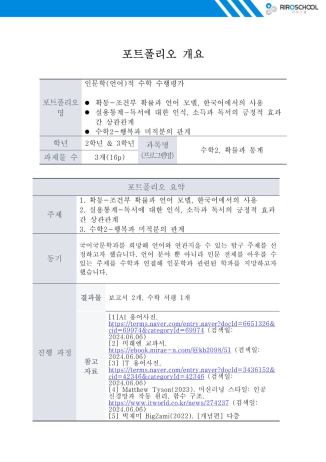 문과생의 수학수행평가- 인문학, 특히 언어와 관련된 주제들