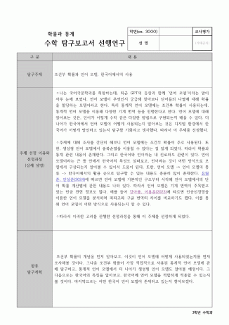 a. 선행 연구 보고서(탐구 주제, 주제 선정 이유와 선정 과정, 향후 탐구계획)