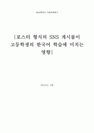 사회과제연구 과목에서 진행된 보고서 작성 수행평가 입니다. SNS 게시물과 언어 학습 간의 관계에 대해 탐구했습니다.
