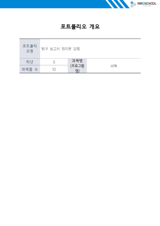 저는 보통 본격적인 탐구 보고서를 작성하기 전에 간략적으로 개요를 작성한 후에 보고서를 작성하는 편입니다.