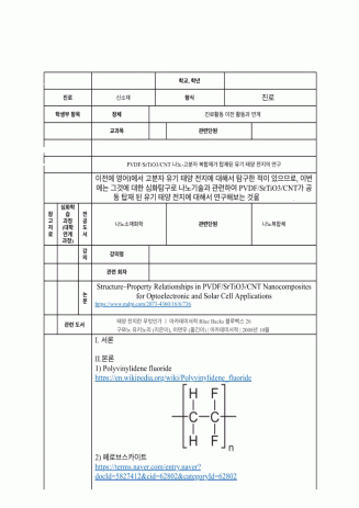 1. PVDF/SRTiO3/CNT 나노 고분자 복합체가 탑재된 유기 태양 전지의 연구