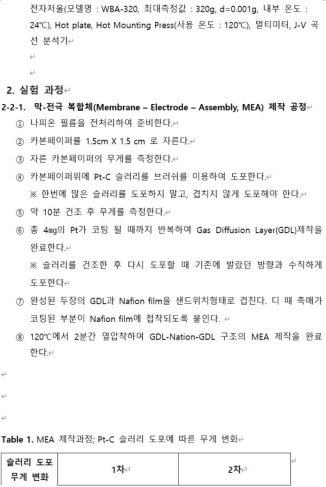 2-2-1. 막-전극 복합체 (Menbrane - Electrode - Assembly, MEA) 제작 과정