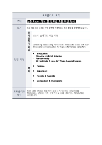 재료 공학 분야의 심화적인 페로브스카이트의 강유전성을 향상시키는 방법에 대한 고찰법으로 이에 흥미있는 학생들에게 추천합니다.
