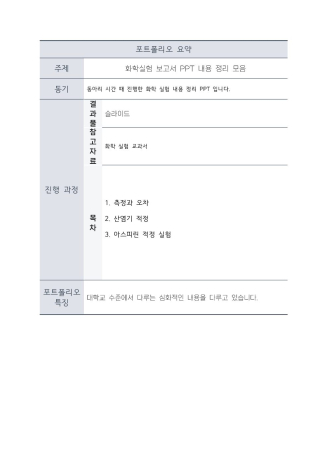 1. 화학실험 보고서 PPT 내용 정리 모음3P