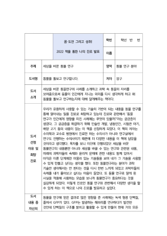 1학년 2학기 중반까지 해양생물 연구를 진로로 탐구하다가 2학기 후반부터 축산을 진로로 삼아 진로가 변화하는 과정이 생기부에 잘 나타나있습니다.