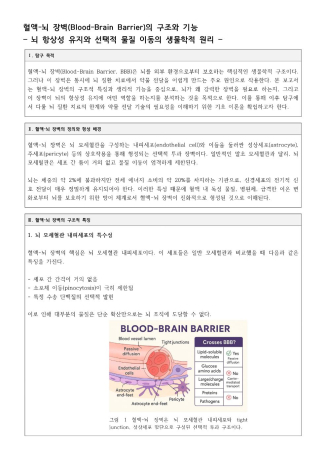 1. 혈액-뇌 장벽의 구조와 기능(뇌 항상성 유지와 선택적 물질 이동의 생물학적 원리)