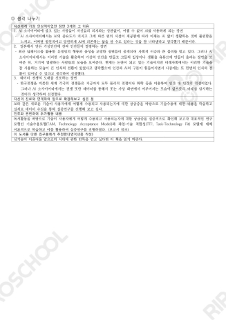 위 포트폴리오는 제 생기부의 핵심 중 하나라고 할 수 있는 실증연구를 진행한 탐구활동 보고서 입니다. 이는 최근 주목 받는 인공지능, 로보틱스, 자율주행 등 신기술의 지속적인 출현으로 기술수용과 활용이 개인의 일상부터 기업과 산업의 성패까지 좌우하는 시대임에 따라 기술이 사용자에게 어떻게 수용되고 사용되는지 이론적으로 학습하고 실증해 본인의 경영학적 소양 및 탐구자로서의 역량을 보이기 위해 실시하게 되었습니다. 해당 포트폴리오를 참고하여 주제선정 및 연구방법론에 도움받으시길 바랍니다.