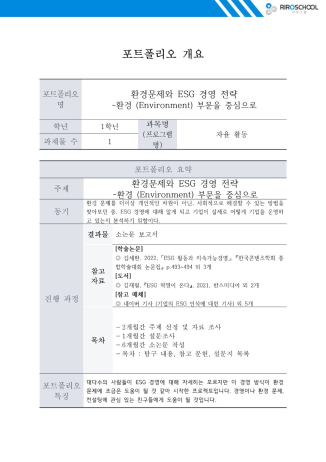 기후변화와 팬데믹이라는 위기 속에서 환경 문제를 개인의 노력을 넘어선 사회적 시스템으로 해결하고자 하는 절실한 고민에서 이 탐구를 시작했습니다. 단순히 기업의 도덕적 책임을 묻는 것에 그치지 않고 ESG라는 비재무적 지표가 어떻게 기업의 생존을 결정하는 강력한 경영 전략이자 투자 리스크로 작용하는지 분석할 수 있도록 장기간 거의 1년 동안 노력했습니다!