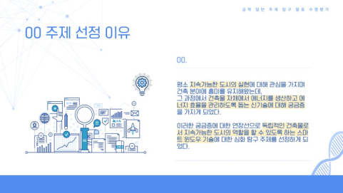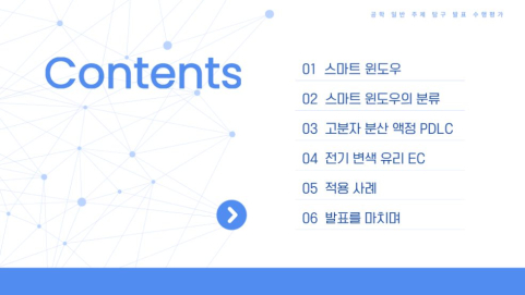 위 포트폴리오는 3학년 공학 일반 시간에 진행한 탐구로 지속 가능한 발전을 위한 신기술인 스마트 윈도우에 대해 정리하고 동향을 분석한 탐구입니다.