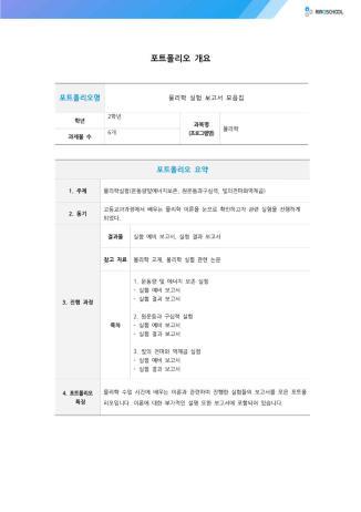 물리학 수업 시간에 배우는 이론과 관련하여 진행한 실험들의 보고서를 모은 포트폴리오입니다.