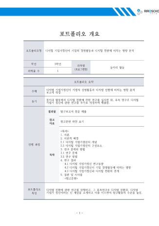 디지털 전환에 관한 연구를 진행하고, 그 후속연구로 디지털 전환과 디지털 기업가 정신이라는 신 개념을 소개하고 이를 이으면서 탐구활동의 수준을 높이고자 하였습니다. 본 포트폴리오를 통해 생소한 개념을 기존의 개념과 결합하여 보고서를 작성하는 요령에 관해 전달 되었으면 좋겠습니다.