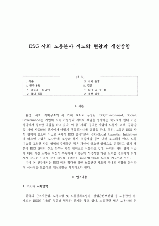 1. ESG 사회 노동분야 제도화 현황과 개선방향제언