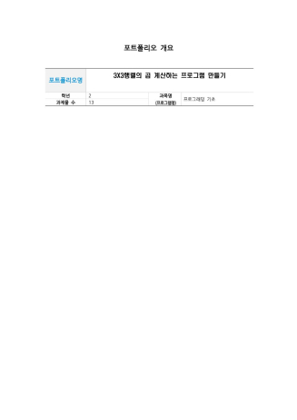 C언어 기초 내용인 행렬의 내용을 활용해 3 곱하기 3의 행렬 형태를 계산하는 프로그램을 설계하였다,