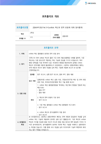 본 포트폴리오는 고등학교 생명과학에서 배우는 면역 반응과 중심원리 개념을 실제 mRNA 백신 기술에 적용하여 분석한 심화 탐구 활동입니다.