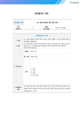 도시 열섬 현상이라는 특정 현상에 대해서 여러 변수를 과학적으로 분석하여 프로그래밍을 이용해 최적값을 계산하여 프로젝트를 진행한 점에서 복합적이면서 심화있는 프로젝트로 볼 수 있습니다.