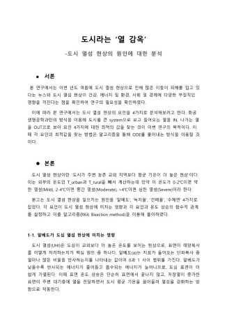 도시 열섬 현상의 원인에 대한 분석과 이를 극복할 수 있는 방안에 대한 프로젝트를 진행하였습니다.