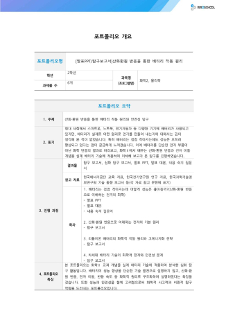 본 포트폴리오는 화학Ⅱ 교과 개념을 실제 배터리 기술에 적용하여 분석한 심화 탐구 활동입니다.