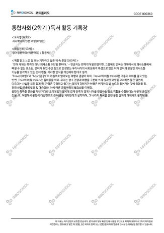 어떤 책을 읽고 생활기록부에 넣을지, 독서 후 내용을 어떤 방식으로 기록할지 등이 막막한 문과(특히 인문-어문계열) 멘티분들께 훌륭한 참고본이 될 것이라고 생각합니다. 영어영문, 불어불문쪽 학과 진학을 희망하신다면 이번 포트폴리오 정말 자신있게 추천드릴 수 있어요!