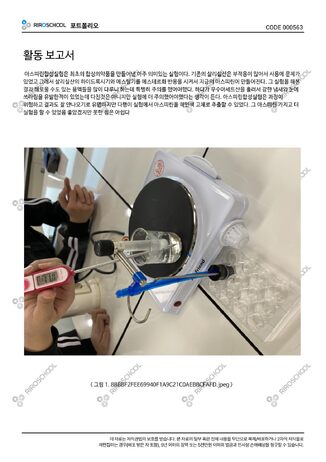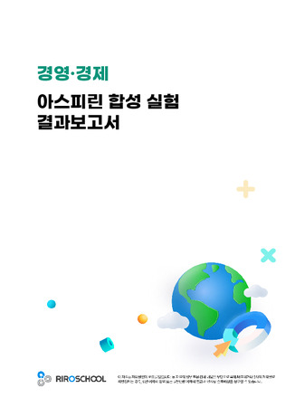 아스피린 합성 실험은 정말 유명한 실험입니다. 아시다시피 아스피린은 최초의 화학의약품으로서 이를 합성하는 실험은 화학에서 굉장히 중요합니다. 저는 고등학교 재학 당시 의약품에 대한 관심이 많았는데 그 중에서도 아스피린 합성 실험은 직접 의약품을 합성한다는 면에서 난이도가 은근 있는 실험이긴 하지만 제약연구원들이 할법한 실험개요에 이 분야에 대한 경험을 얻은 것 같았습니다. 저도 응용화학과 바이오의약전공 이라는 학과에서 공부해본 결과, 1학년 때 실험을 정말 많이 하게 됩니다. 그때 처음 의미 있는 실험을 접하는 것도 좋지만 고등학교 생활하면서 주도적으로 실험을 계획하고 경험하는 것도 남들과는 비교되는 값진 경험이라고 생각합니다.