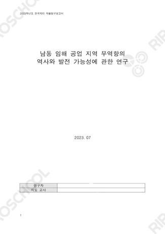 1. 한국지리 주제탐구: 남동 임해 공업지역 무역항의 역사와 발전 가능성3p