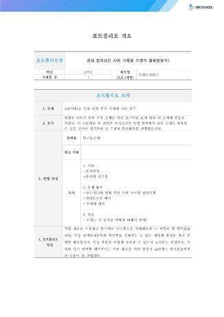 직접 자료를 수집하고 분석하여 탐구활동을 진행했으며 그 과정이 잘 담겨있습니다. 직접 혈액관리본부와 인터뷰를 진행하는 등 많은 애정과 관심을 갖고 진행한 활동입니다. 인성 부분을 어떻게 보여줄 수 있는지 고민하는 학생분들, 진로와 엮기 애매한 과목에서는 어떤 활동을 하면 좋을지 고민하는 학생분들에게