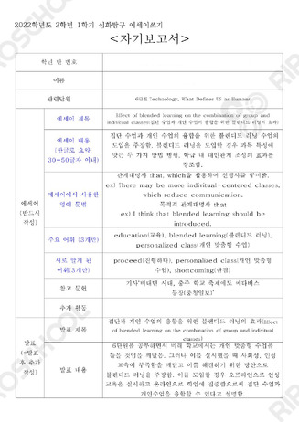 -진로와 직업 '집단 수업과 개인 수업의 융합 강조에 관한 칼럼' -> 영어2 ' '블렌디드 러닝 수업' 방식에 관한 탐구 및 발표'
